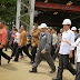 Ketua Pengarah Kawasan Keselamatan Khas Timur Sabah (ESSCOM) Datuk Mohammad Mentek (kanan) bersama Ketua Setiausaha Negeri Sabah Tan Sri Sukarti Wakiman (tiga dari kanan) melakukan lawatan ke FELDA Sahabat yang musnah terbakar akibat kumpulan pengganas di Lahad Datu, semalam.